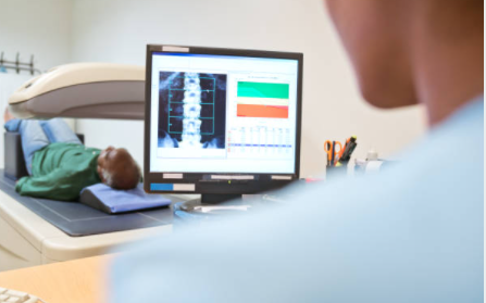 El examen de densidad ósea, también llamada absorciometría de rayos X de energía dual, DEXA o DXA, utiliza una dosis muy pequeña de radiación ionizante para producir imágenes del interior del cuerpo, generalmente la parte inferior de la columna (lumbar) y las caderas, para medir la pérdida de hueso.