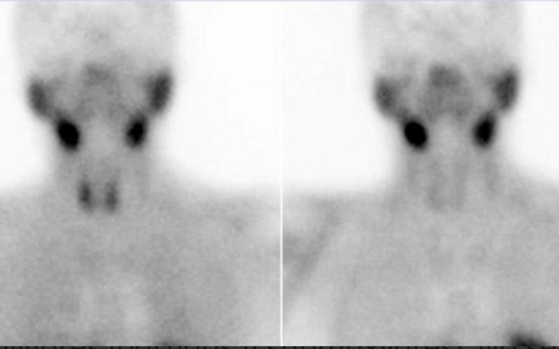 Dicha exploración consiste en la administración de un radiofármaco por vía venosa y la obtención de imágenes bajo cámara a los 20 y 150 minutospostinyección.