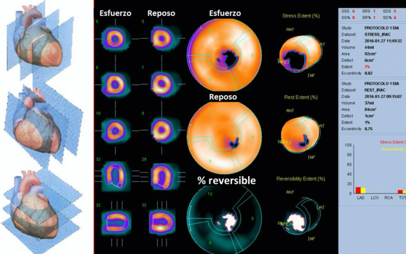 La exploración consiste en valorar la perfusión del tejido cardíaco en esfuerzo y en reposo.
